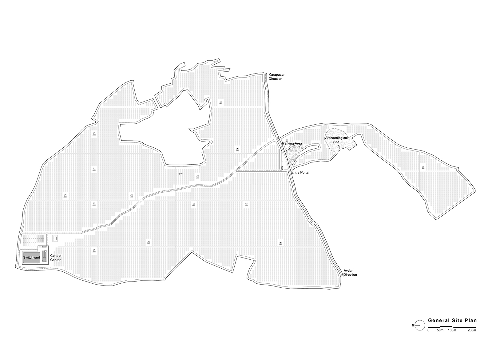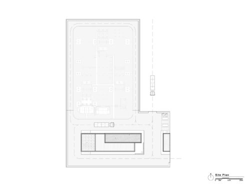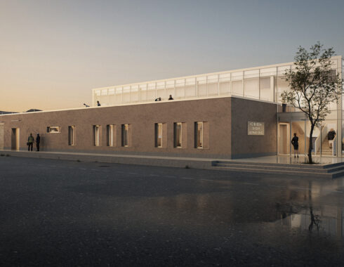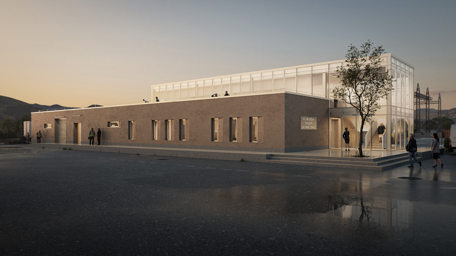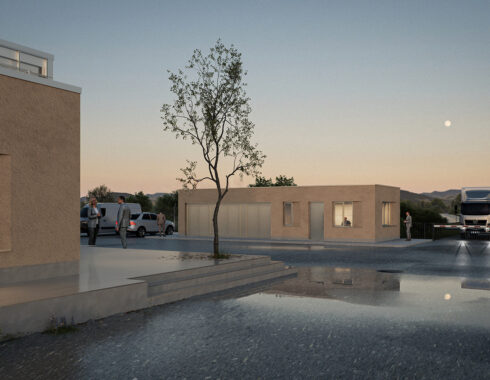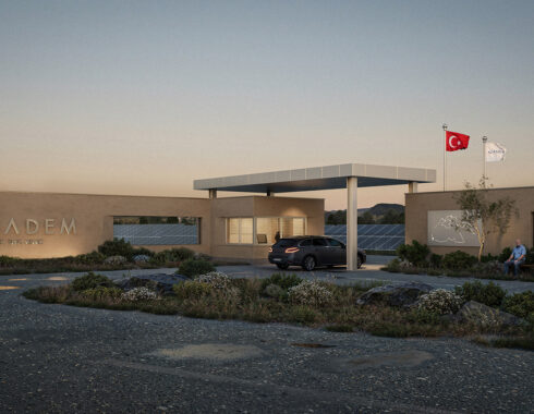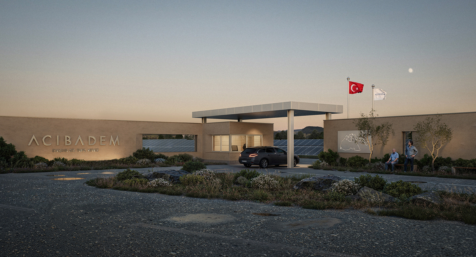 Acibadem Eskisehir Solar Power Plant Transformer Center, designed to serve as a control building for the solar energy field built to meet a large part of the energy needs of Acibadem Hospitals in Odunpazari, Eskisehir, includes a gathering area and viewing deck in addition to technical areas, and explores the relationship between masses that create contrast with each other. The ground-level mass achieves an opaque facade appearance through the use of straw plaster, while the upper mass forms an abstract volume using a silicone-composite glass facade to showcase the panoramic view. The straw plaster used on the facade also influences the interior space through various wall surfaces and furniture.