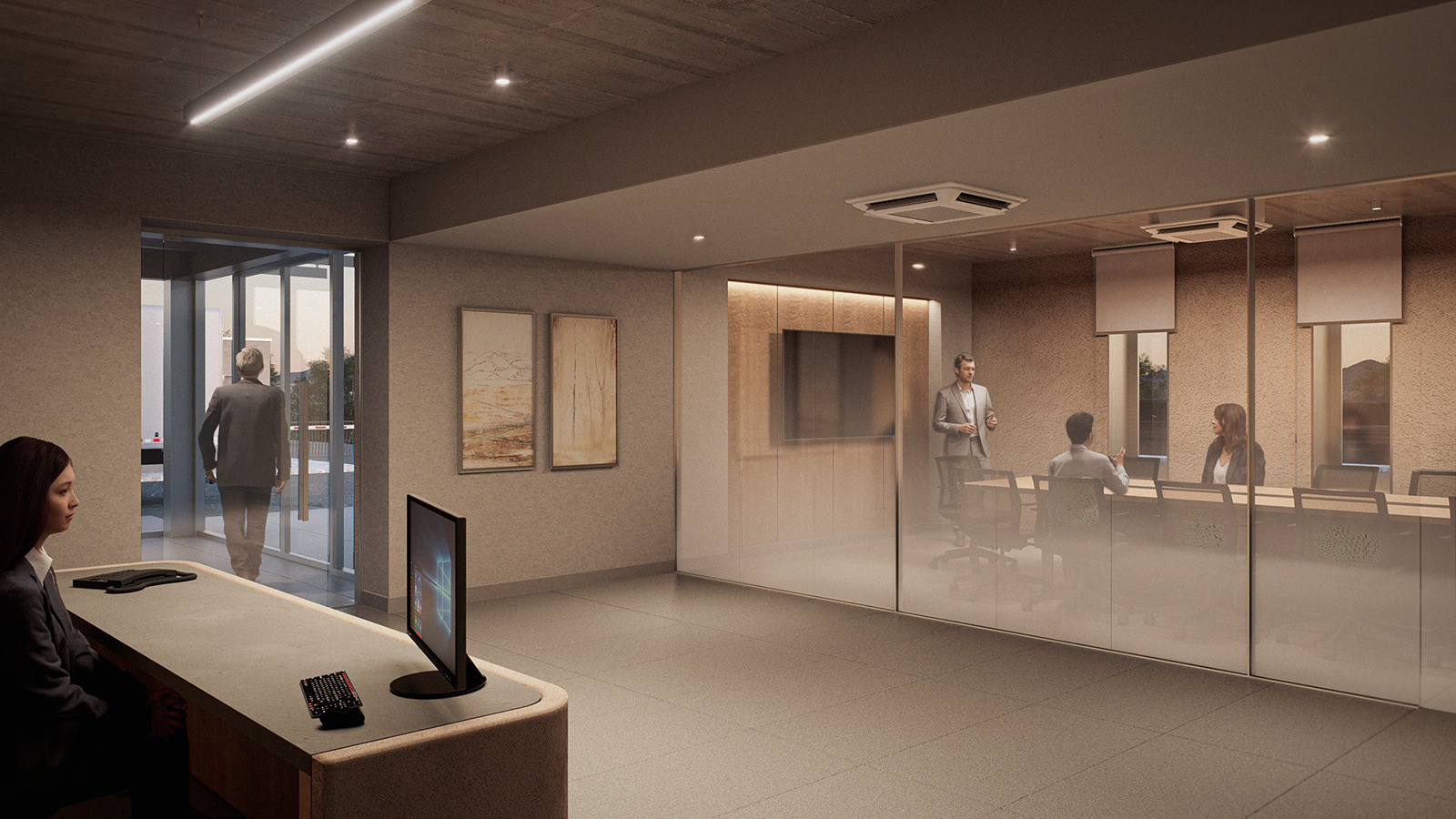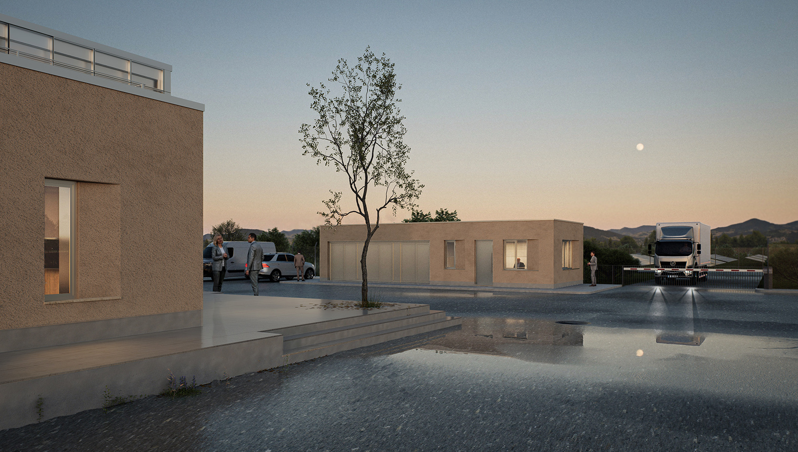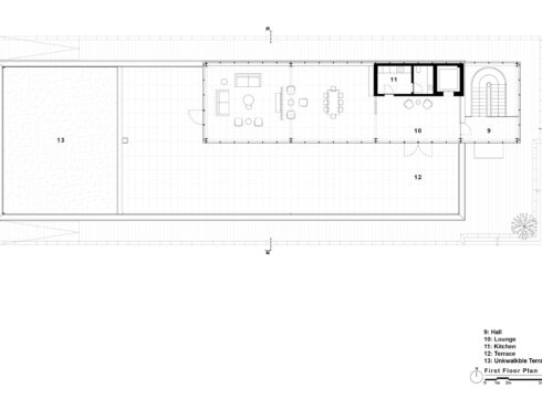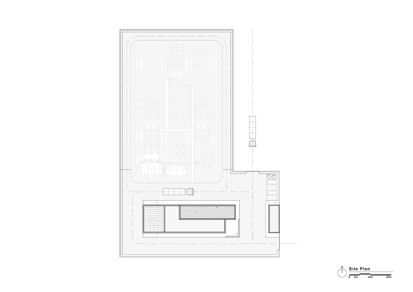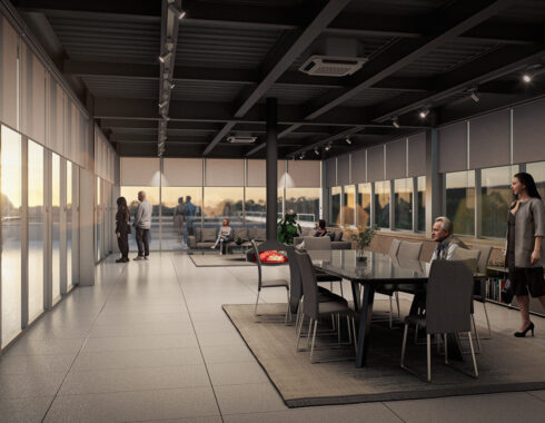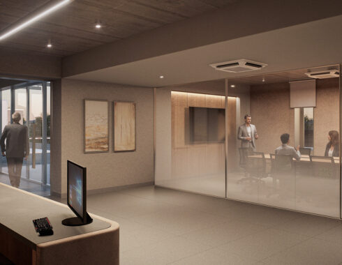 Acibadem Eskisehir Solar Power Plant Transformer Center, designed to serve as a control building for the solar energy field built to meet a large part of the energy needs of Acibadem Hospitals in Odunpazari, Eskisehir, includes a gathering area and viewing deck in addition to technical areas, and explores the relationship between masses that create contrast with each other. The ground-level mass achieves an opaque facade appearance through the use of straw plaster, while the upper mass forms an abstract volume using a silicone-composite glass facade to showcase the panoramic view. The straw plaster used on the facade also influences the interior space through various wall surfaces and furniture.