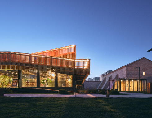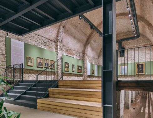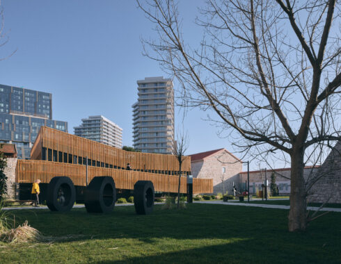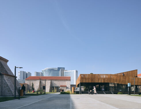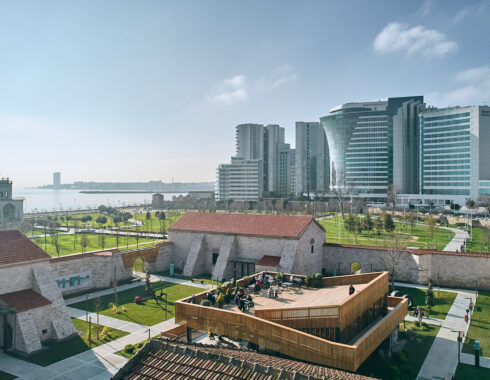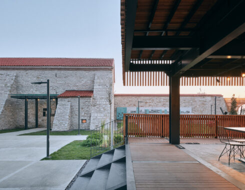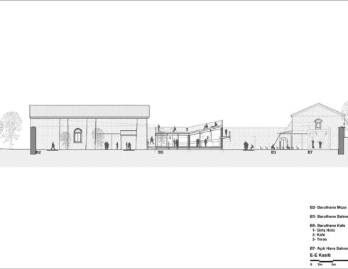 In the restoration of the Baruthane campus, special attention was paid to the separation of old and new. New steel structures was used both in the pavilion in the center, in the entrance eaves added to the buildings, in the completion of the courtyard gate on the side of the Millet Bahçesi, and in the mezzanine floors in the interior spaces. The structures in question were covered with wooden slats mounted at intervals, to create semi-permeable surfaces when desired. These surfaces differ from the impermeable stone walls of Baruthane, and do not divide the space, while drawing a vague border.