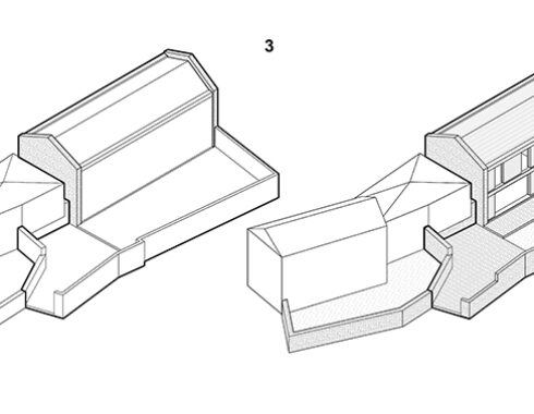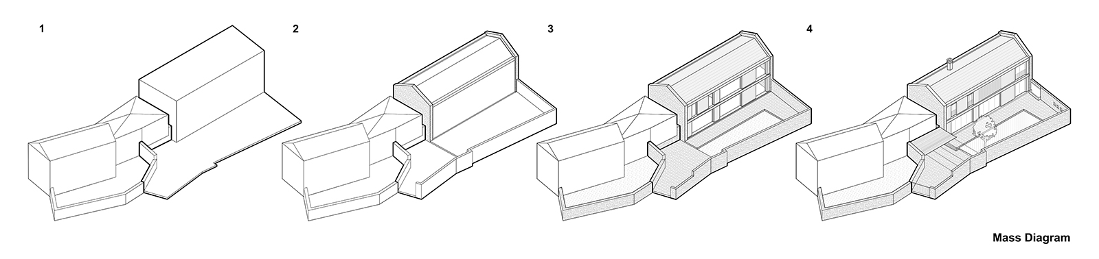 Coker House is in Sogutlu Village, situated in Ayvacik, Canakkale. While positioning the house, the aim was to maintain the street line by continuing the existing series of buildings and to leave a garden area facing southeast. The house and the garden are entirely surrounded by a stone wall, with heights changing according to the location, containing voids and niches. The inside-outside relationship is built through a brick and glass wall, placed inside this stone envelope, which works as an interface. Ground floor is organized as an open space. Double storey high living room, located at the center of the house, is separated from the kitchen and the dining area, with a double-sided fireplace. Ceramics workshop, opening directly towards the garden with the help of a fountain, placed specifically for the host, who wants to hear the sound of water while working, is on the other side of the living room. On the upper floor, there are three bedrooms connected with a bridge overlooking the living room. In the building, the reinforced concrete is exposed and the overlapping of the shutter dimensions and façade modulation gives birth to a spatial rhythm. With the help of the modulated interface, interior spaces are associated with the garden. In order to maintain this association and to block the view from the neighboring garden sitting on an upper level, an open-air dining area, covered with reed, is conceived next to the garden wall.