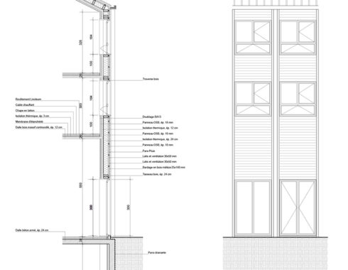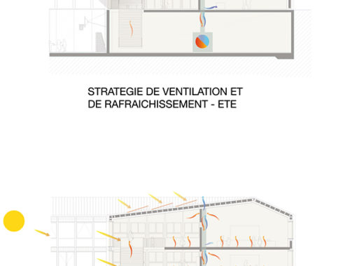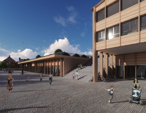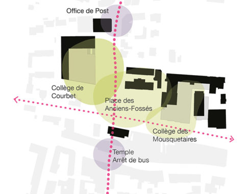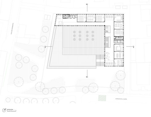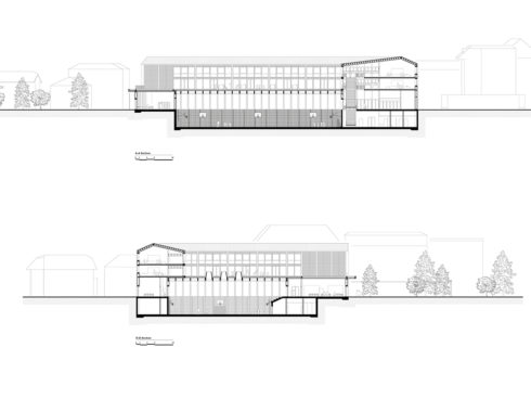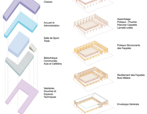 The new College de Courbet would replace the existing school building, situated at a central location within the municipality of La-Tour-de-Peilz, Switzerland. The objective was to open the school to the public, with a public library, a multi-purpose hall, a gym and workshops, which do not depend on school hours. As a matter of fact, school’s interaction with the city would be increased, without disturbing the education. In our proposal, we positioned the new school in the northern part of the site. This way, we managed to preserve the existing trees and gave way to a green space which would work as a meeting point between the train station and the town center. We aimed at connecting Anciens-Fossés Square, an important public space for La Tour-de-Peilz, with the ground floor of the school building containing new extroverted functions, through this greenery. Moreover, with the help of the roof garden above the gym, we expanded the continuity of the green to the upper level. Large corridors serving the classrooms as well as activity spaces, which also work as closed recreation areas, are positioned towards this roof garden, facing South, protected from negative climatic conditions, by the L-shaped building surrounding it from two sides. With higher volumes set back towards the North, the building approached the human scale, where it “contacted” the public space. In our design, low-carbon emission and recyclability were important selection criteria for the construction system and building materials. As a matter of fact, we proposed a laminated timber construction, on top of a reinforced concrete basement floor. Interior walls are wooden carcass, while thermal insulation is provided with wood foam. We preferred solid wooden panels for interior coating and wooden strips as facade cladding.