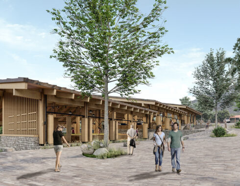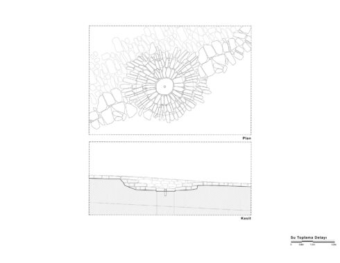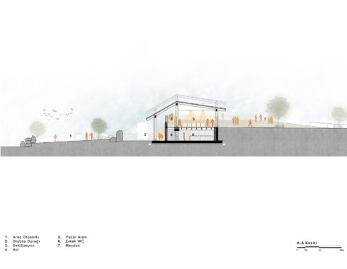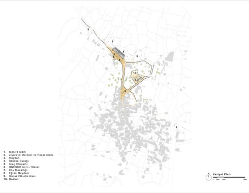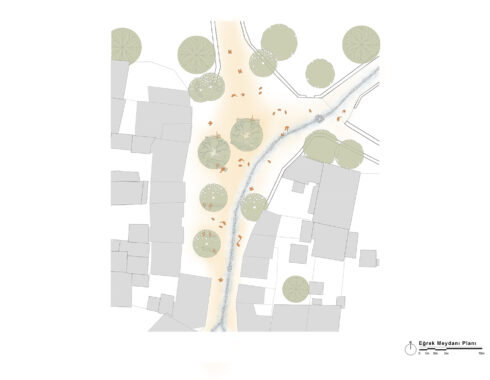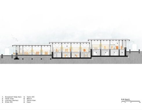 We designed a new covered bazaar building, right across the entrance of the village. Besides its commercial function, the building includes a visitor center and service areas including restrooms, prayer rooms, a storage space and a technical room. The stallholders invading Egrek Square will be relocated in this building. This way, it will be possible to cleanse the square from illegal additions and increase the legibility of the original pattern.