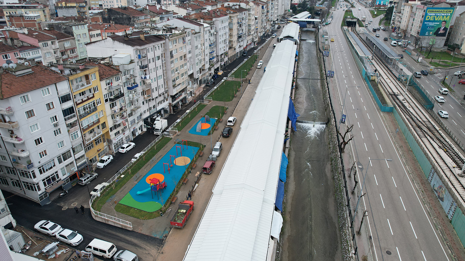 Gokdere Bazaar and Recreation Area is located along Gokdere River in the Yildirim district of Bursa. The project consists of two parts: Refurbishment of the existing bazaar structure and creation of a new recreation area.