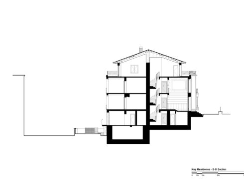 It has been proposed to increase the cross-sections of the interior walls, in accordance with the static report and project, for the purpose of strengthening of the building. The ceiling of the terrace floor is thought to be removed in order to reduce the load on the whole of the building and to benefit from the height. The existing roof, which is sloped in four directions, will be reconstructed in steel.