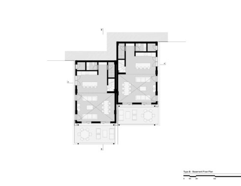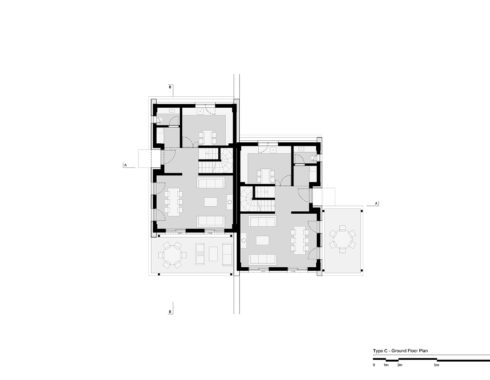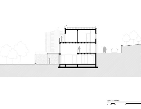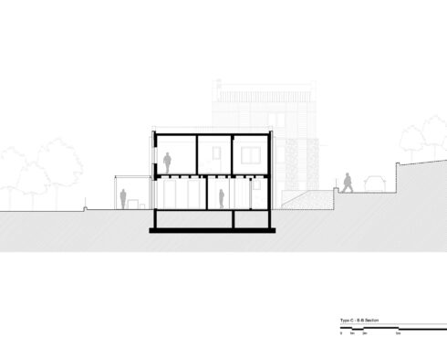 Type A’s and C’s are duplex villas, wheres type B’s are triplex villas, which gain an additional floor with the help of the natural slope. All of the houses have living rooms and kitchens on the garden level and contain bedrooms on the upper floors, except for type A villas which have an additional bedroom on the ground floor.