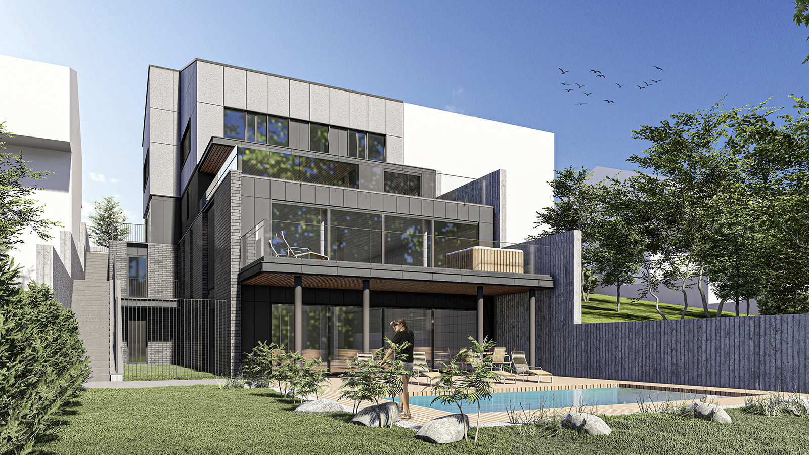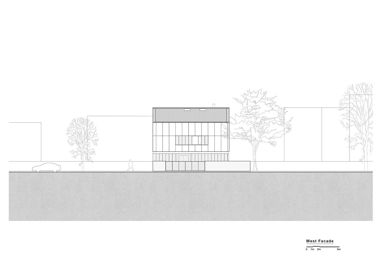 A minimalist, timeless, and contemporary architectural language has been adopted in the choice of materials. The use of different materials on the façade, aligned with the building’s stepped form and various sections, allows the mass to be perceived not as a monolithic structure, but as a composition of distinct volumes adapted to the site’s elevation.