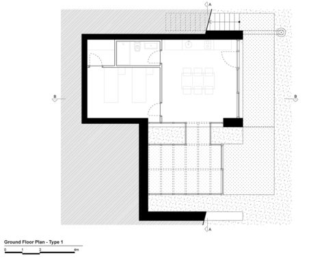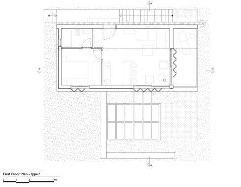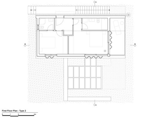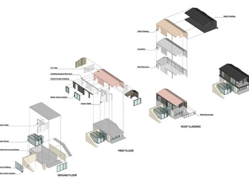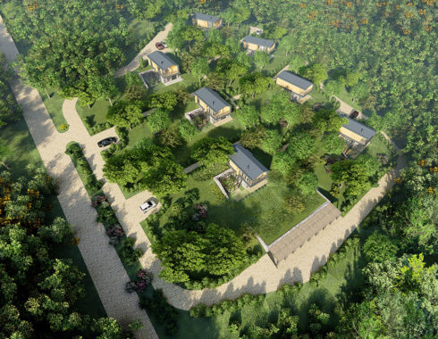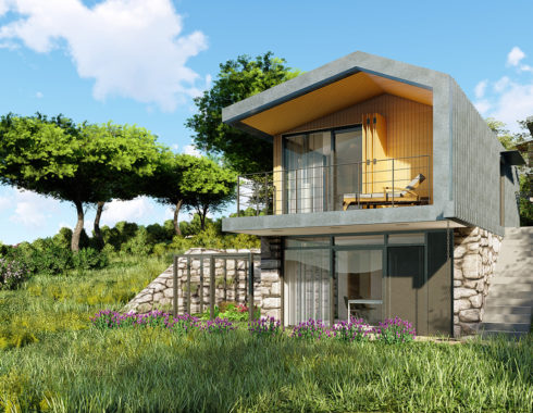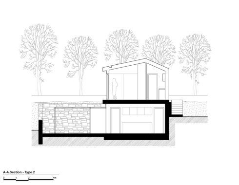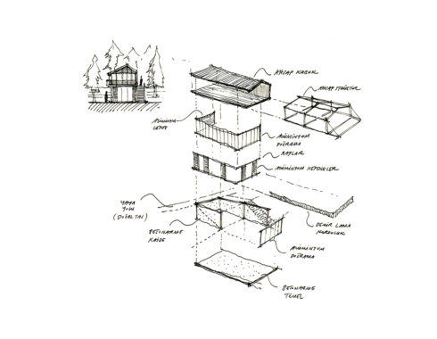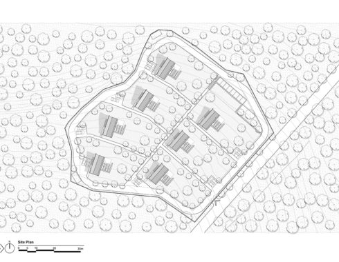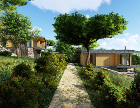 The project sits on a site of approximately 8.000 m2, surrounded by forests, overlooking the Iznik Lake. It consists of seven houses, as well as a shared space. Houses are positioned in such a way to make use of the topography, and not to block the views of others while looking towards the lake, over their gardens. Car traffic is kept at the boundaries of the site, with the help of a ring road and parking spaces distributed along this road. From the parking spaces, it is possible to reach the houses, by means of pedestrian roads, parallel to the slope. These roads merge into the main pedestrian axis at the center, going down to the shared space. Together, these roads provide a comfortable pedestrian circulation within the site. Houses are composed of reinforced concrete and natural stone, solid bases, and wood and metal, light units sitting above. Bases with front facades remaining above ground, with the help of the slope, are built in the first place, along with infrastructure works. Following this, prefabricated CLT panels, with openings for doors and windows, and reservations for water and electricity fittings, already set at the factory, are mounted on top, by means of a crane. This way, not only the construction difficulties are minimized, but also, a light and breathing structure is obtained. Finally, wooden facade cladding and metal roof cladding are applied. In this project, we propose two house types. Even though their exterior appearances do not change, their plan layouts vary, according to different usages. It is possible to add a greenhouse, if needed, to both of these types, where the stairs are kept outside. In this settlement, where rain water is collected and used, electricity is provided by sun and water is obtained with the help of an artesian well, compromising with nature is a fundamental design aspect.