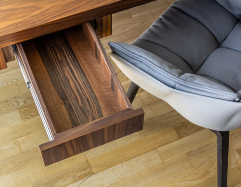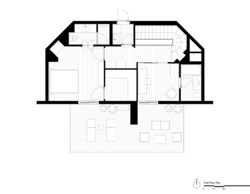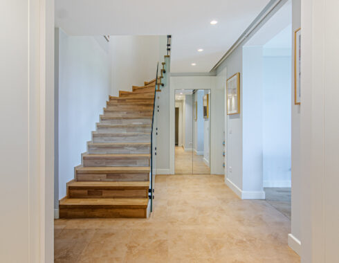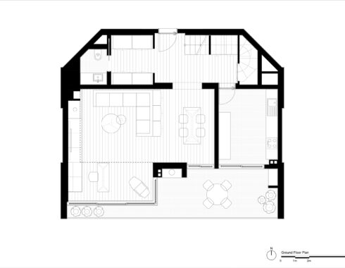 Our intervention consists of an update of the existing plan, especially the first floor, a partial change in the material palette and an extensive interior design work.