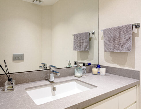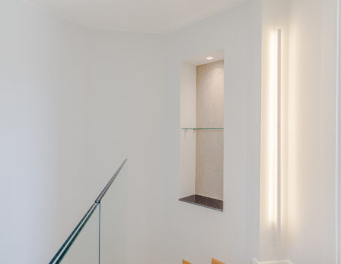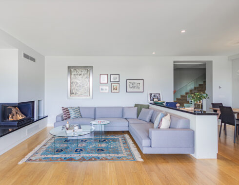At NCE House, the living room has been reorganized with the addition of a fireplace on the corner and a TV unit as its extension. Existing stairs at the hallway, with open risers and rather wobbly, has been replaced with another one, with closed risers and a storage space underneath. The restroom on the ground floor, as well as the bathroom in the master bedroom have been completely renewed, while the second bathroom on the upper floor, along with the kitchen, have been partially modified. All the movable furniture and lighting fixtures have been selected, while all the fixed furniture and interior doors have been designed from the scratch, according to the needs of the client.