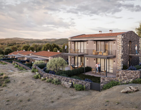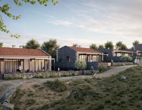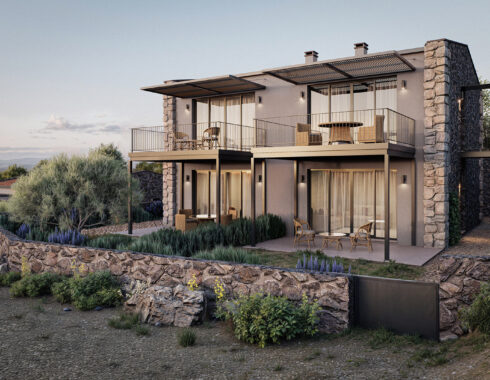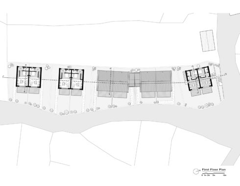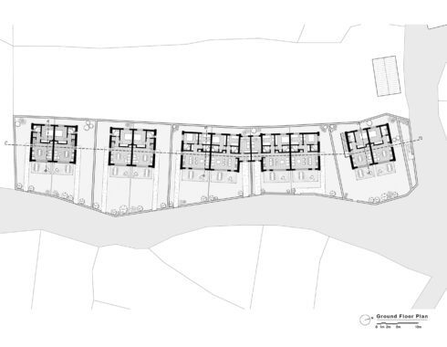 The project consists of 12 housing units, each with its own private garden, carefully positioned according to the natural slope of the land. The buildings are arranged in a stepped layout, oriented to the east, maximizing sunlight exposure, views, and privacy for each unit.