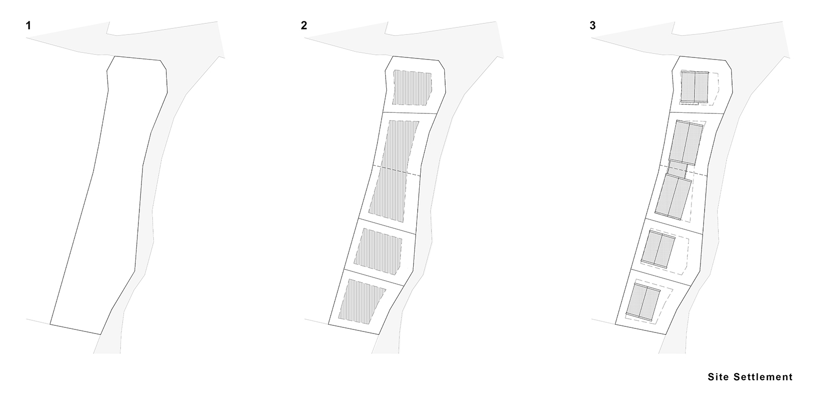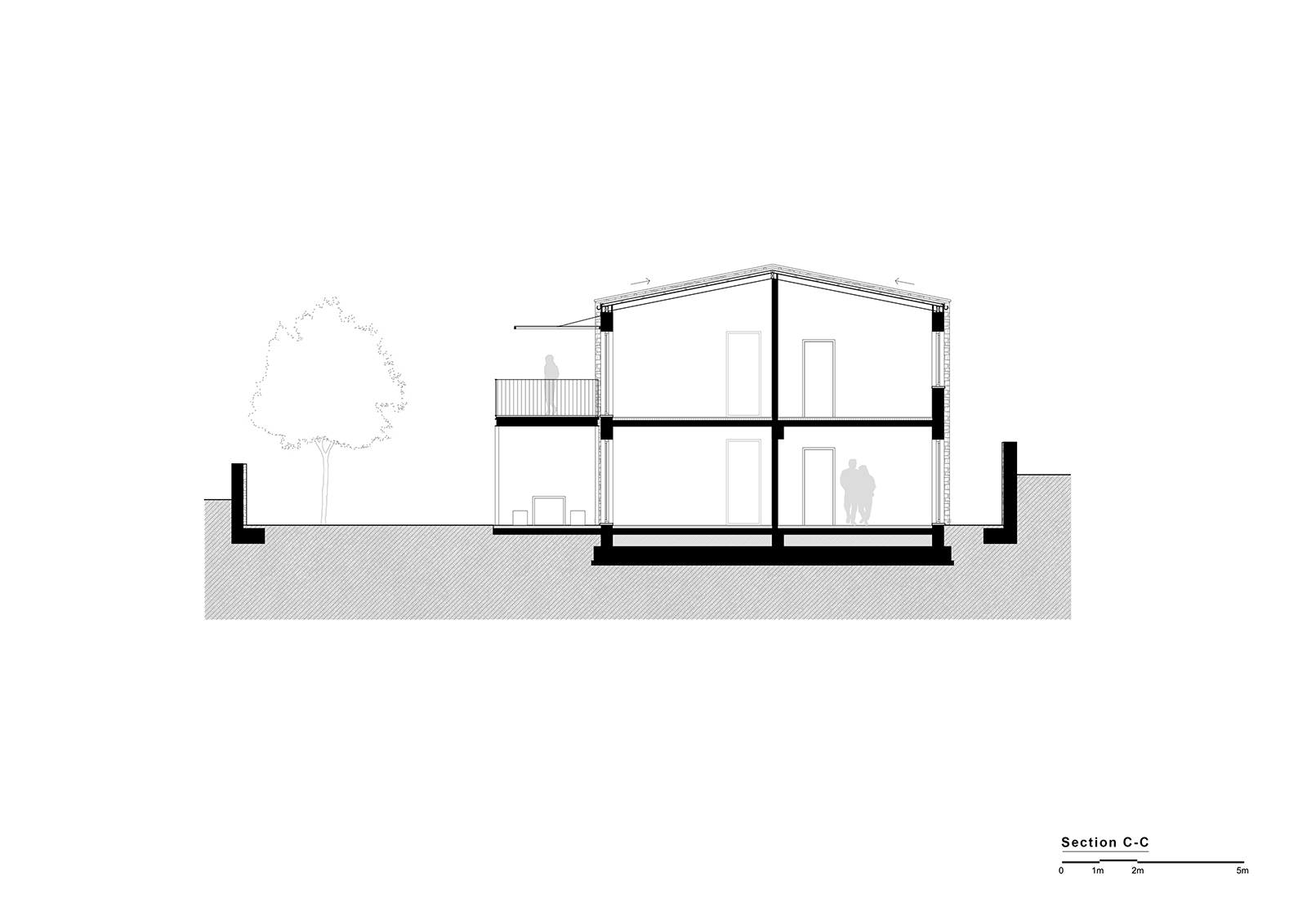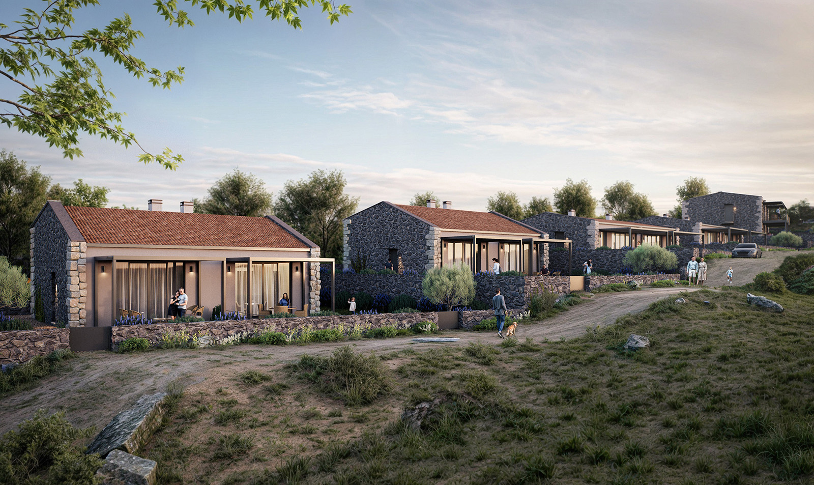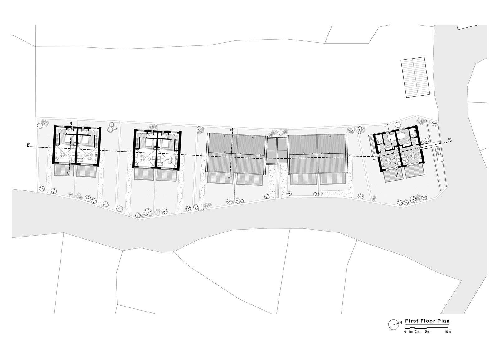 – Single-storey twin houses, where the natural slope is used strategically to enhance the separation and individuality between the paired units,