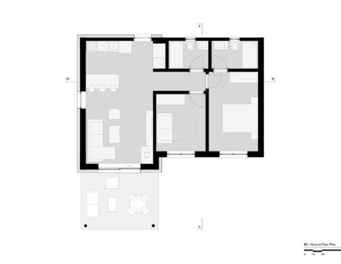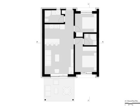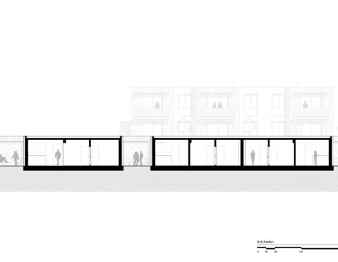 The upper-floor apartments are accessed via a staircase located at the short end of the block and an open corridor running along the rear facade. Unlike the lower-floor apartments, which open directly onto the garden, these apartments connect to the outdoors through spacious balconies. These balconies also serve as a roof for the verandas of the lower-floor units. Access to the lower-floor apartments and the front single-story houses is provided from the rear facades.
