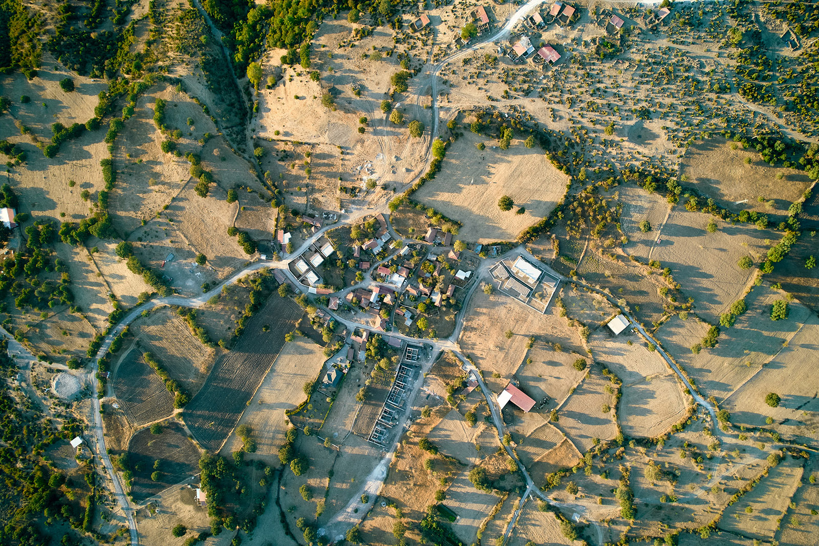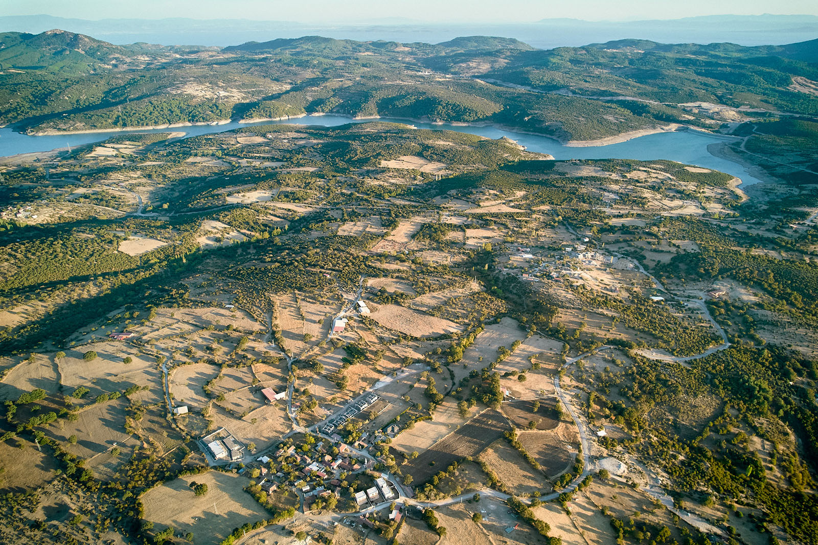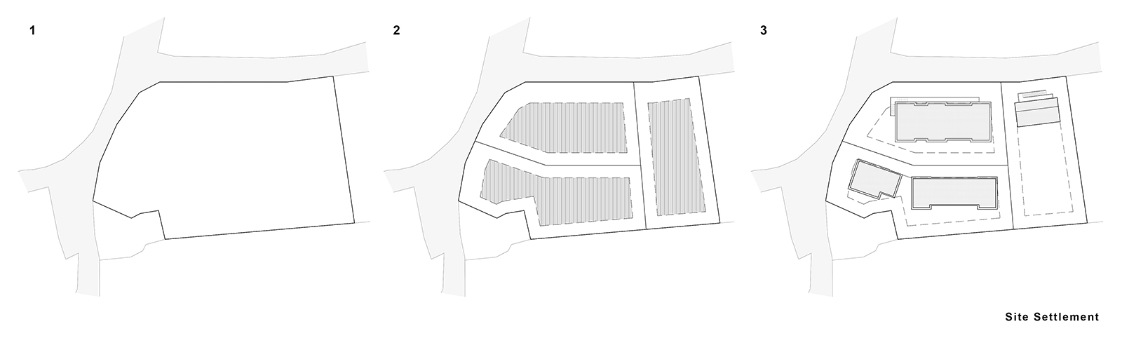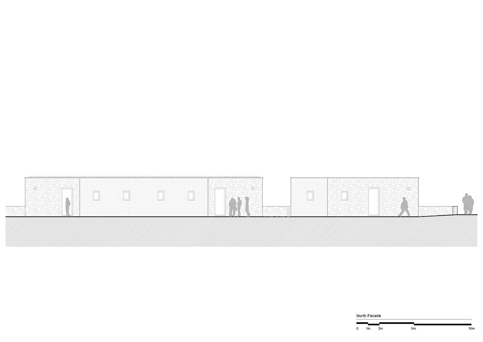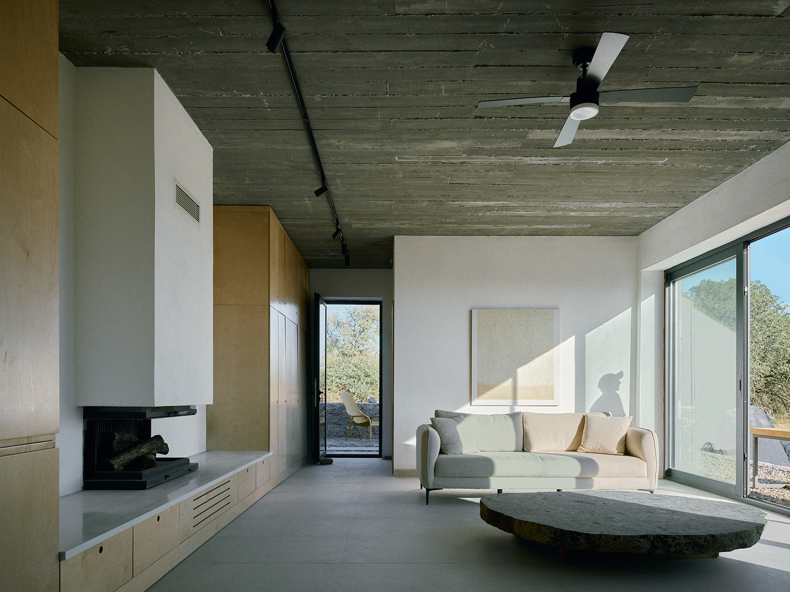 Adjacent to the houses, there is a land installation called “Prayer Space”, created by artist and architect Sinan Logie under an existing wild pear tree. Ormos Tartisik Guesthouse, designed to host various events throughout the year, faces the horizon through this installation.