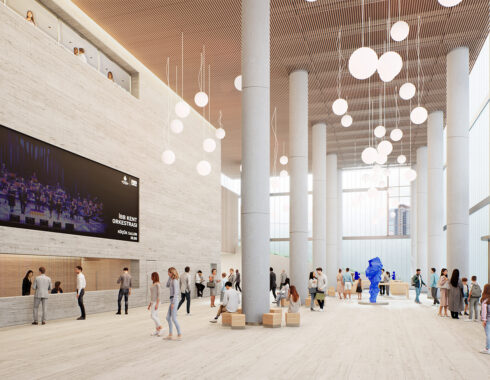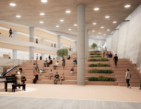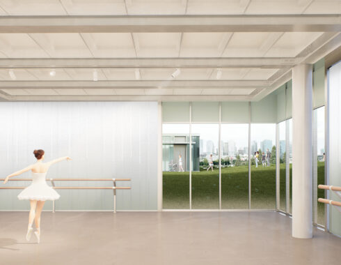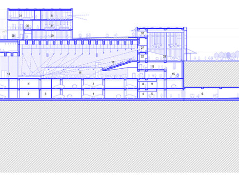 Placing the main functions that make up the cultural center underground, as a basis for the functions above, prevented the building to be seen as a larger mass from outside, and the image of a park and the boxes scattered within it was strengthened. The profilite-covered, semi-transparent surfaces of the boxes hide the contents inside while at the same time arousing curiosity. They show the inside indistinctly during the day and illuminate the outside brightly at night. Just like Le Corbusier’s “miracle boxes” (la boîte à miracles), which hide miracles inside and do not reveal secrets from the outside, these boxes are expected to spread miracles to the city.