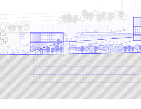 In addition to utilizing transportation opportunities, providing for the lack of public green spaces that the neighborhood and its immediate surroundings suffer from is another issue focused on within the scope of the project. It is recommended that the existing park next to the area be expanded and made accessible. Thanks to the smoothing of elevation relationships, the park, which is connected to both the metro station and Barajyolu Alt Street, will also form the basis for the masses and boxes that accommodate the different functions of the cultural center.